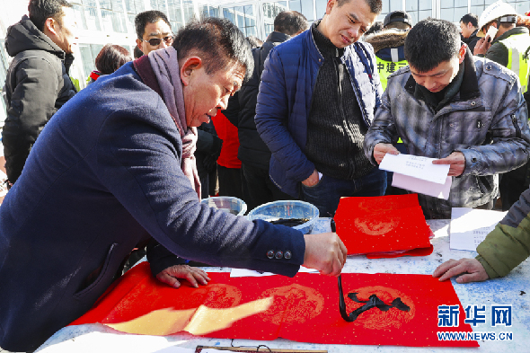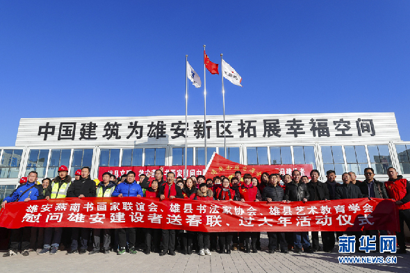 ????春節(jié)臨近,雄縣文聯(lián)、雄安燕南書畫家聯(lián)誼會和安新縣博愛公益志愿者協(xié)會4日組織書畫家和志愿者,來到河北雄安新區(qū)雄安市民服務(wù)中心項目建設(shè)現(xiàn)場,看望慰問一線建設(shè)者,為他們送去新春祝福。