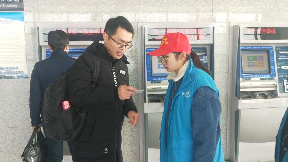 ????在保定東站負(fù)責(zé)人的簡短培訓(xùn)后,志愿者們以小組為單位開展志愿服務(wù)活動。自動取票機(jī)旁,志愿者們耐心講解操作流程,幫助旅客取票;安檢站和檢票口旁,志愿者們維持排隊秩序,幫助工作人員減輕壓力;候車室內(nèi),也有志愿者們幫助旅客拎拿行李,答疑解惑,溫暖旅客歸途;在愛心服務(wù)點(diǎn),志愿者協(xié)助工作人員進(jìn)行指引……志愿者們忙碌的身影和真誠燦爛的微笑隨處可見。