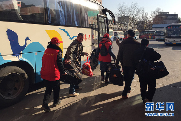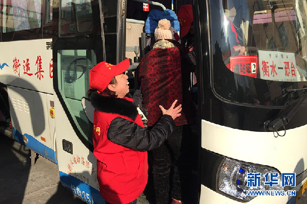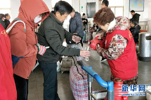 在衡水汽車站,志愿者們?cè)缫褱?zhǔn)備好燒開的熱水,給乘客們暖身子。碰到殘疾人和行動(dòng)不便的老人,志愿者們迅速上前幫助搬運(yùn)行李,攙扶上車。天氣寒冷,可是他們每一個(gè)人經(jīng)常忙得滿頭大汗。“感謝衡水汽車站的志愿者,我的行李比較多,他們幫我搬到了車上,省了我很多事!”一位回家的游客高興地說。