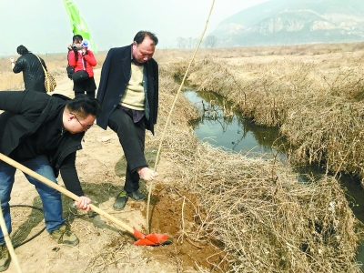 ????3月10日,志愿者們來(lái)村里植樹(shù)。 |